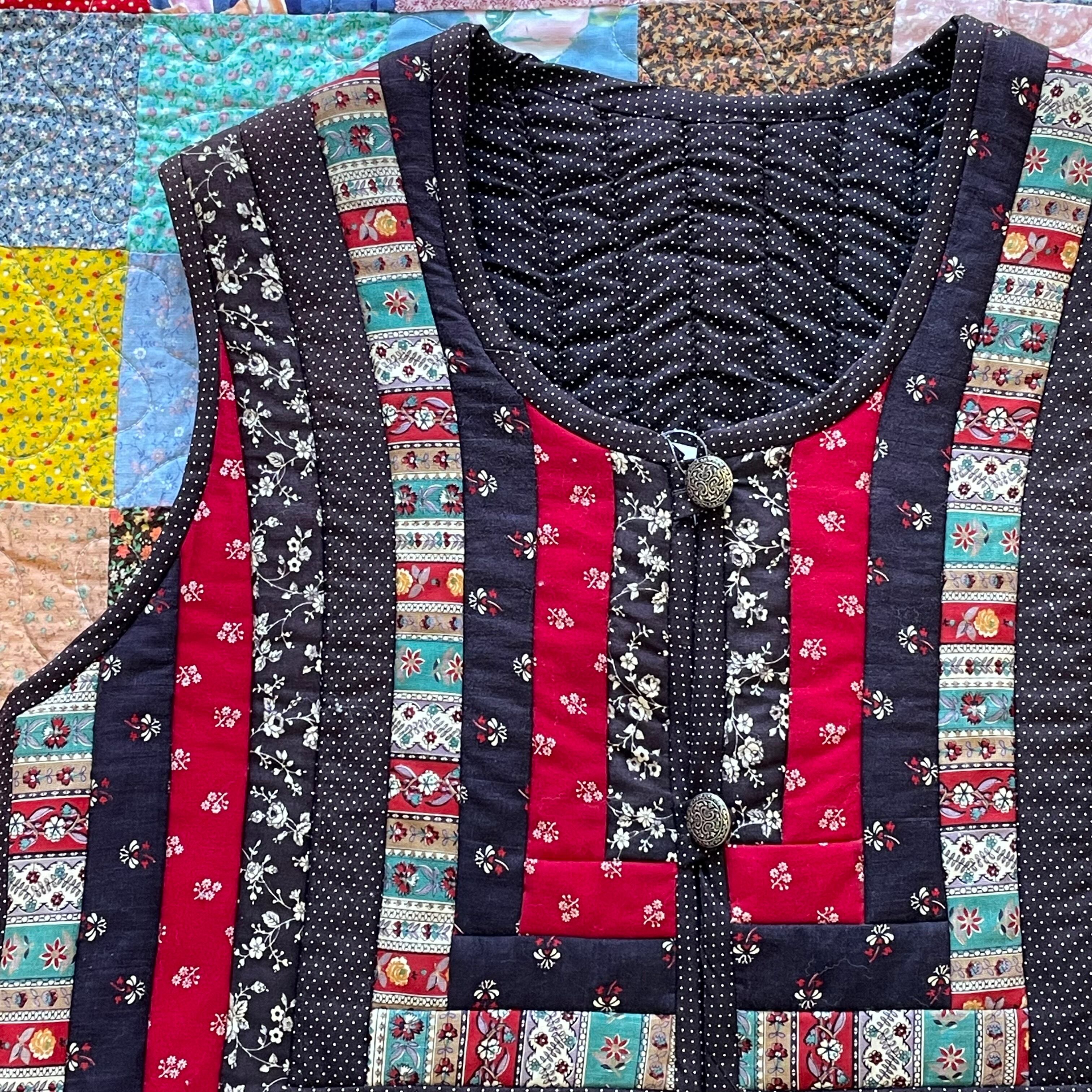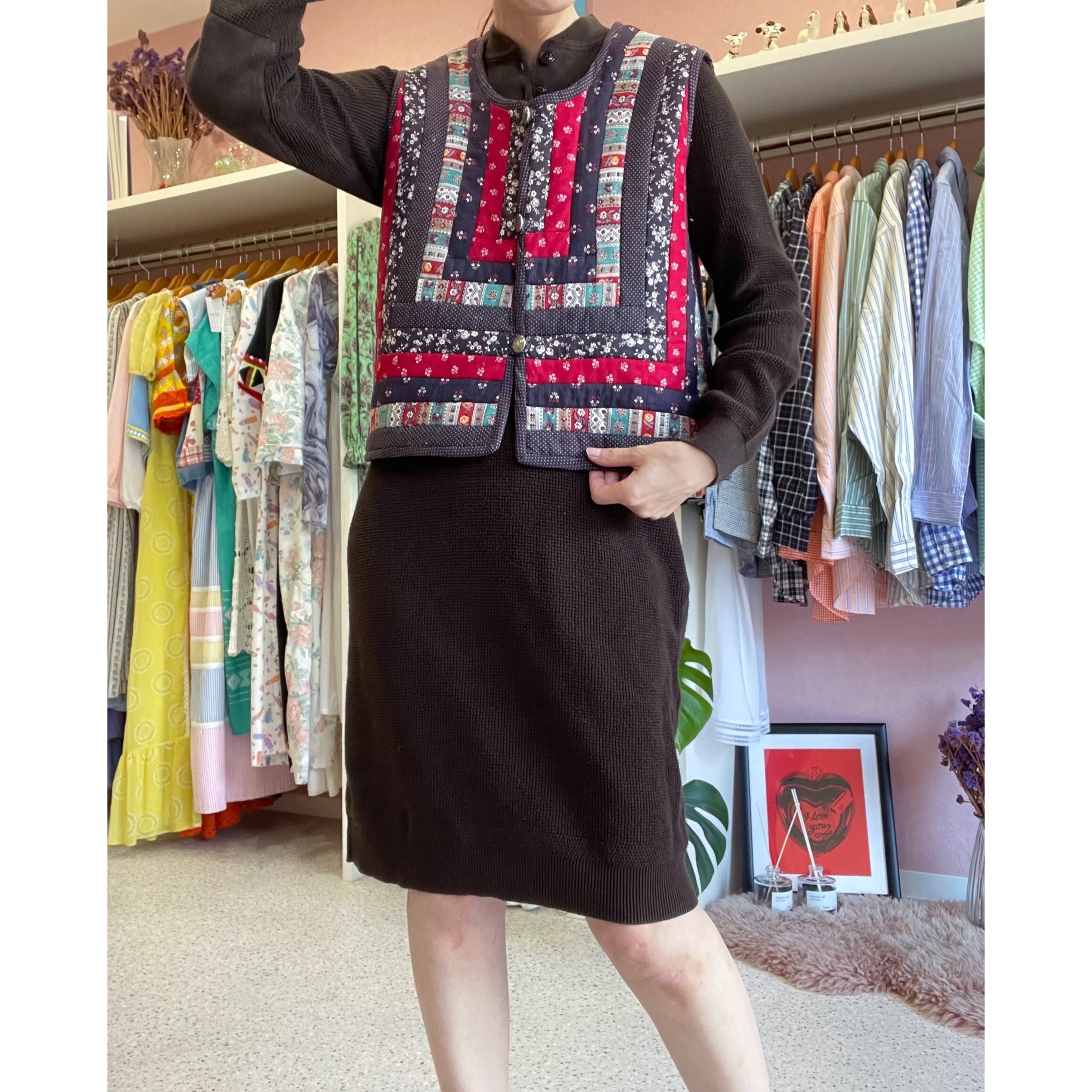 キルティング生地がパッチワークされた可愛いベストです❤️